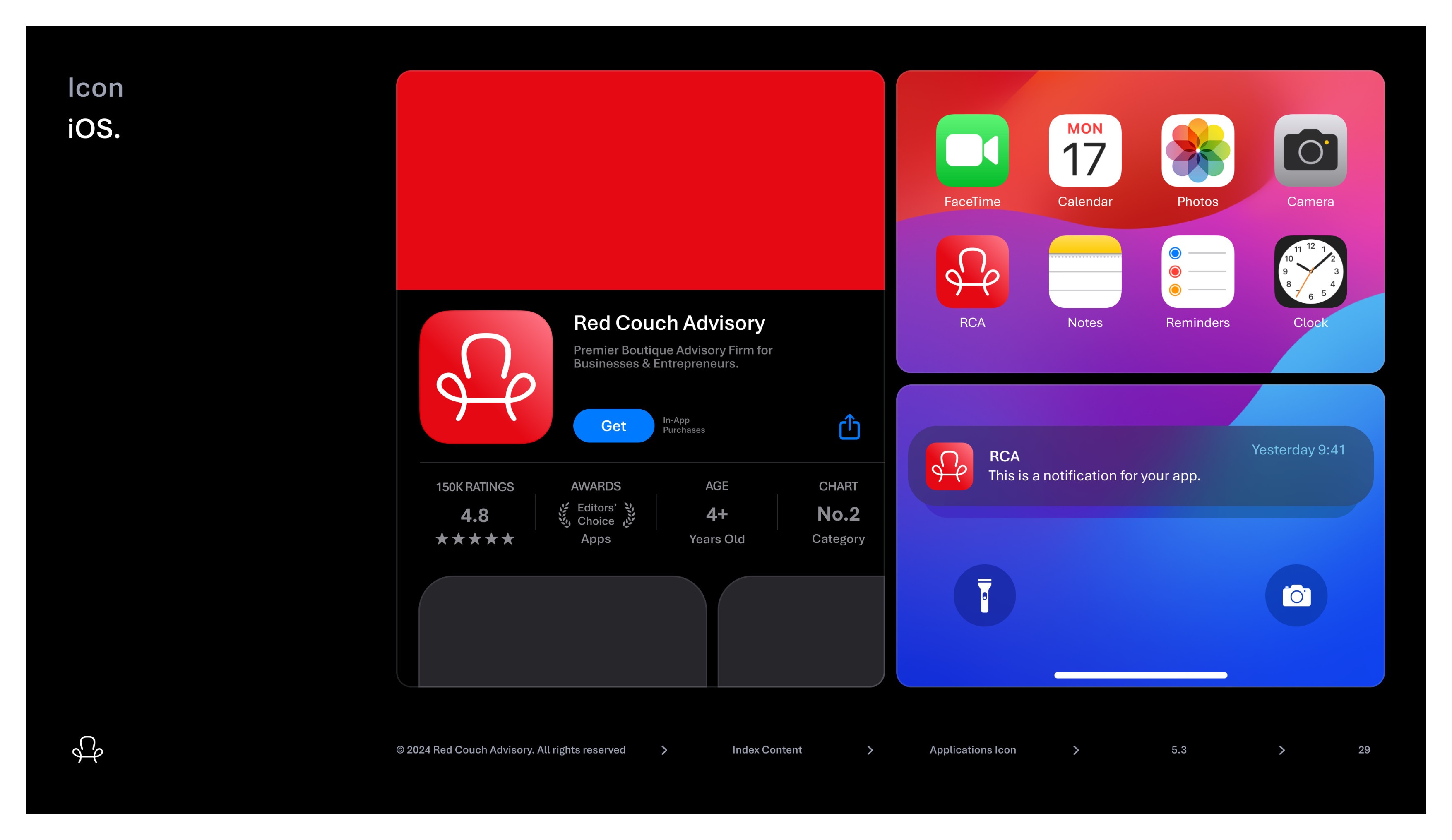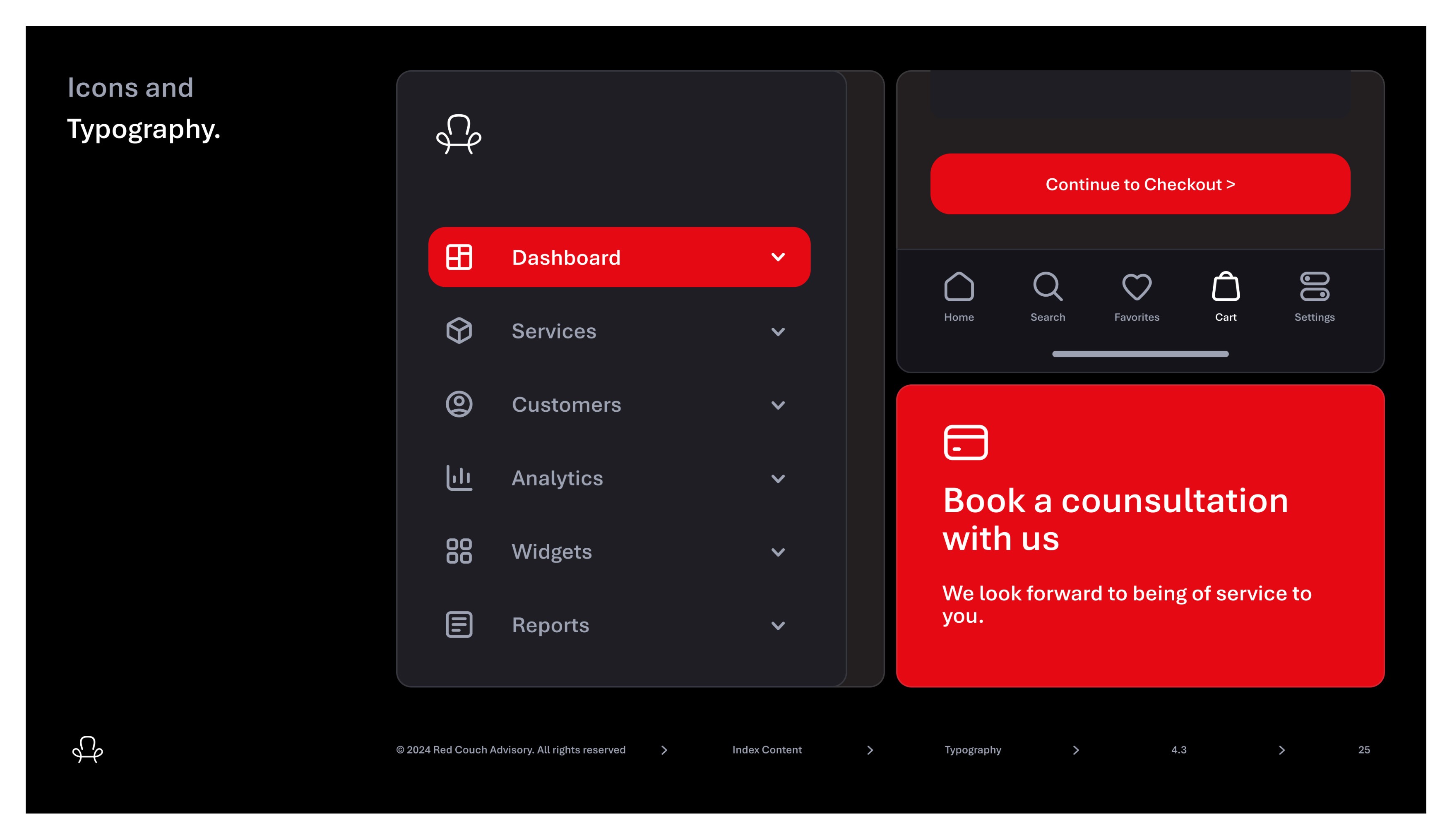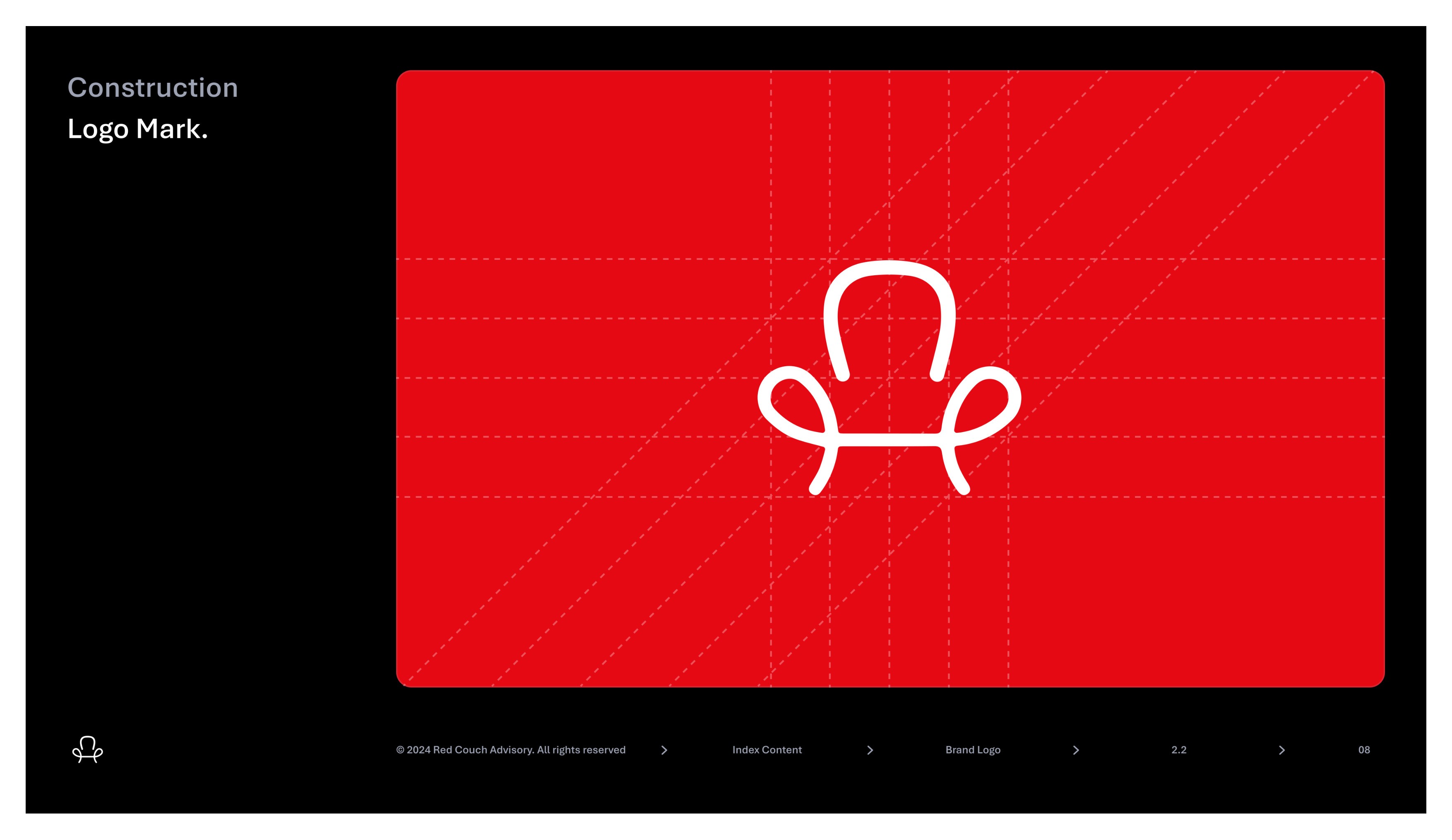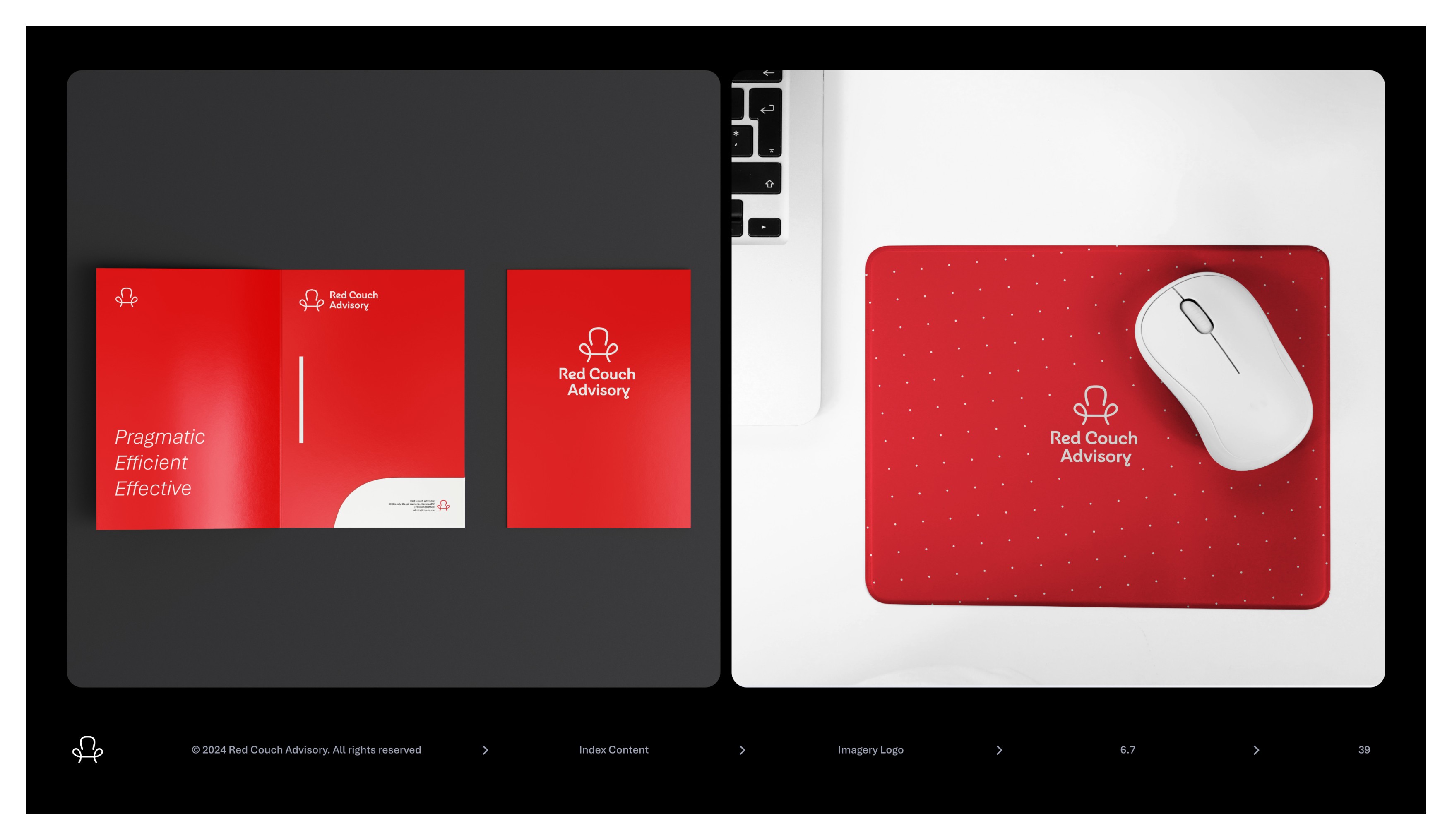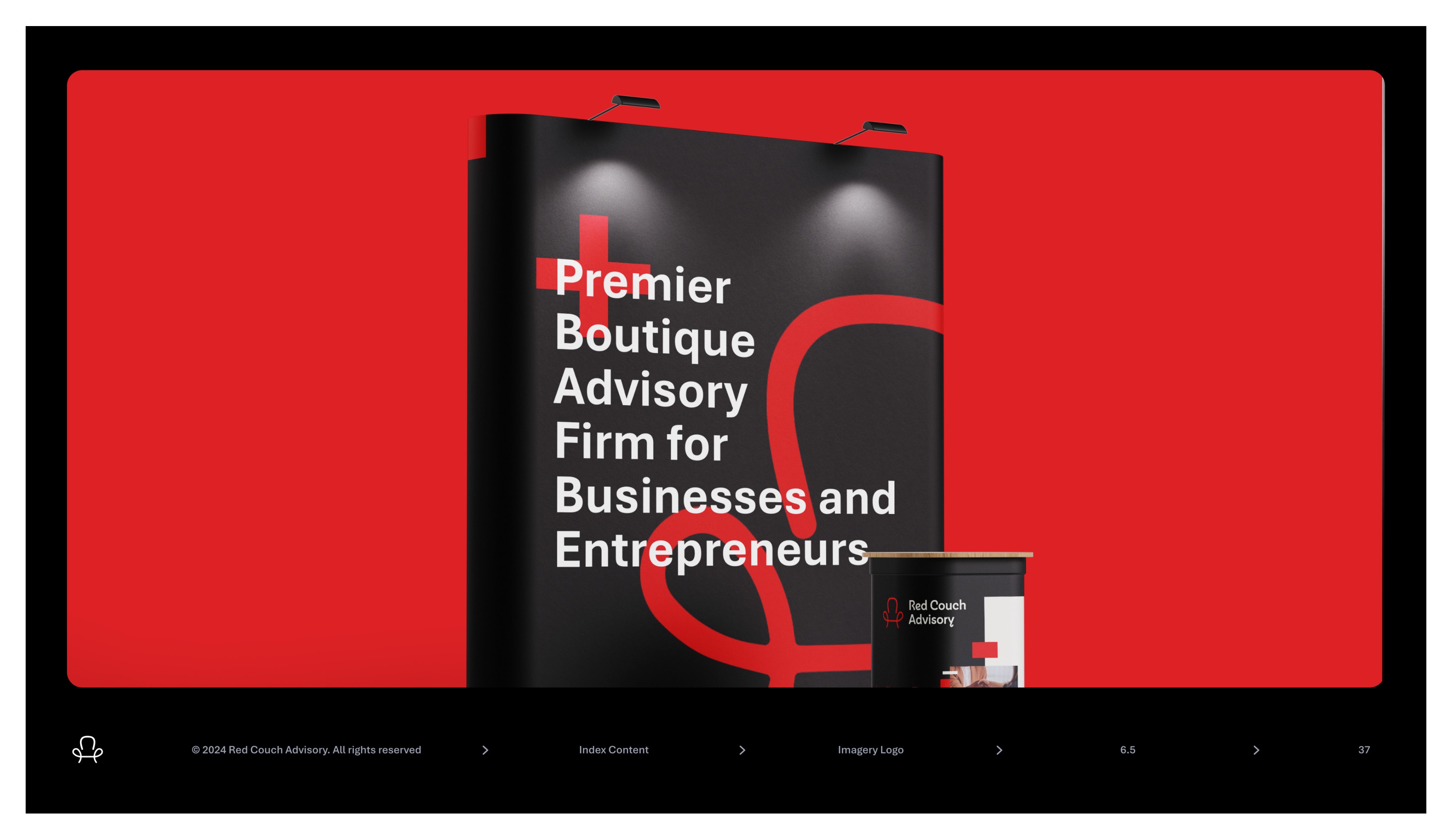 The visual elements were carefully chosen to evoke professionalism while subtly hinting at the approachable, client-first ethos embodied by the "Red Couch" concept.