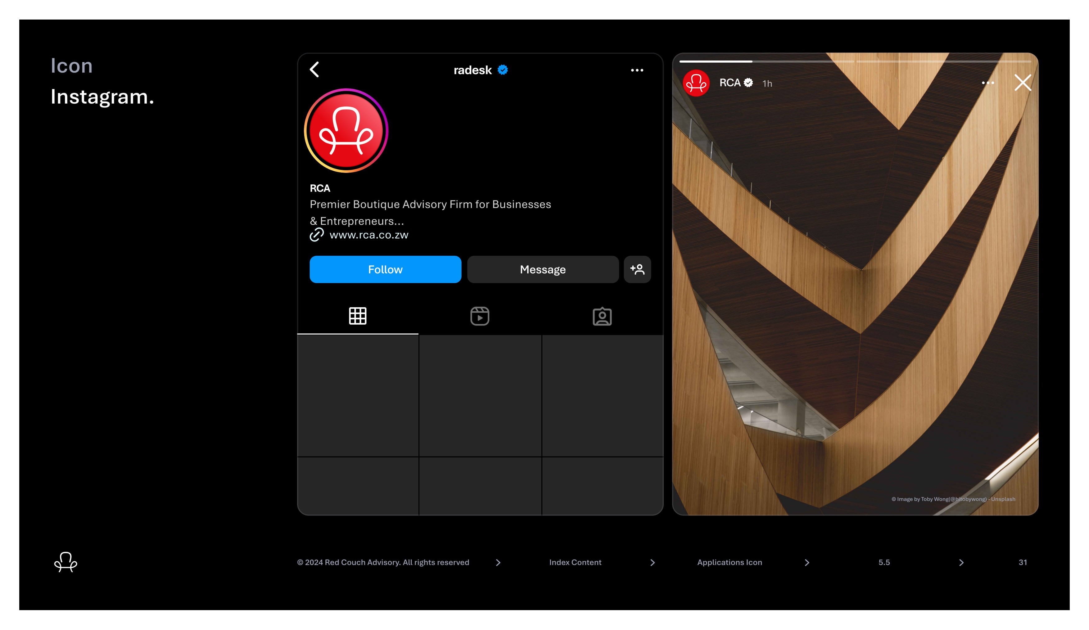 We worked closely with founder Sharon Bwanya to unearth the unique philosophy behind Red Couch Advisory – a name chosen to symbolize comfort, open dialogue, and a safe space for clients to discuss complex financial matters. This human-centered approach became the bedrock of the entire brand strategy.